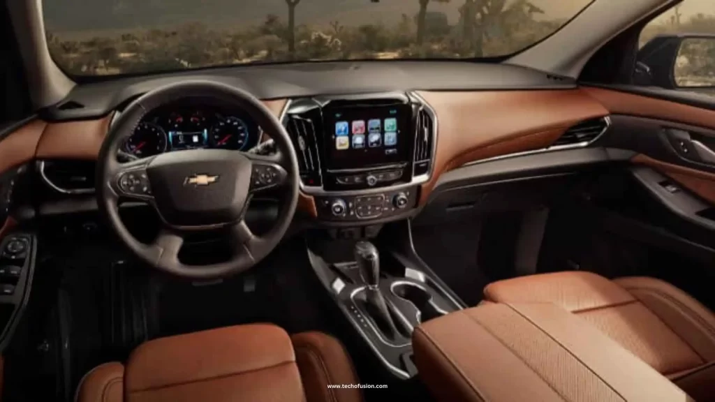 The interior of the 2023 Chevy Traverse emphasizes both comfort and convenience, making it an optimal family SUV. With seating for up to eight travelers, the open lodge is intended for both little excursions and long excursions. Premium features, like warmed and ventilated seats, cowhide upholstery, and power-flexible seating, are available in higher trims like the LT Calfskin and Head models. Besides, trendsetting innovation plays a critical part in improving the driver’s insight. The standard infotainment system incorporates a 7-inch touchscreen, with higher trims offering an 8-inch show, Apple CarPlay, Android Auto, and, surprisingly, a topnotch Bose sound framework.